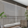 Esse modelo mescla faixas de tecidos translúcidos e faixas de tecidos semi blackout (10cm de semi blackout e 7cm de translúcido), que se intercalam e são as responsáveis pelo controle da entrada de luz!